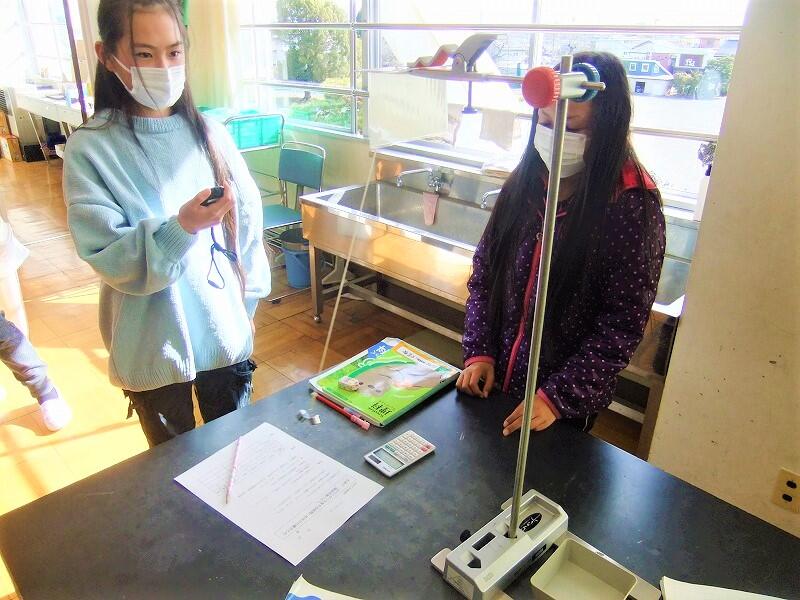 理科の「ふりこのきまり」の授業です。ふりこの振れる時間の規則性について学習する単元です。長さ、振り幅、おもりの重さなどが、ふりこの揺れる時間にどう影響するか、予想を立て、実験をして確認します。