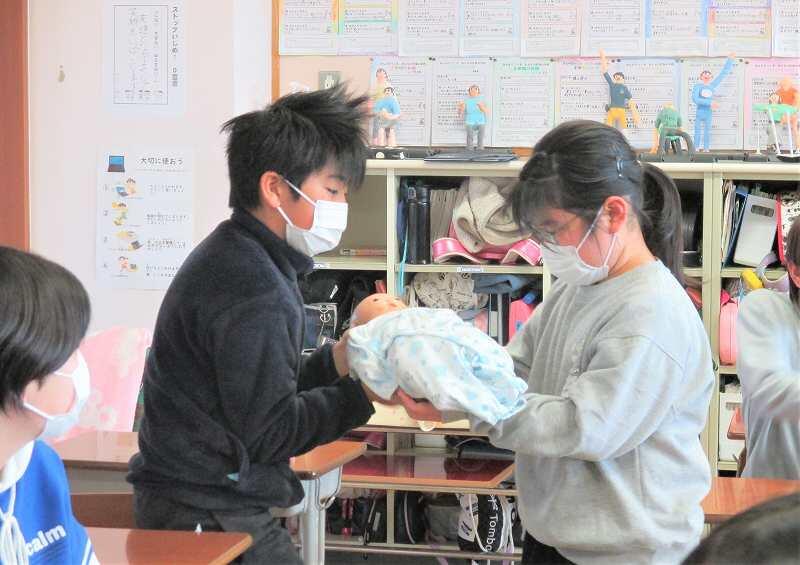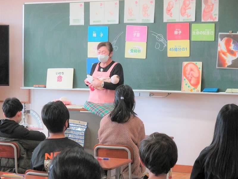 命が生まれてくるまでには多く困難や周りの人たちの助けがあったことを学んだり、赤ちゃんと同じくらいの重さの人形を抱いたりして、命の大切さについて考えることができました。