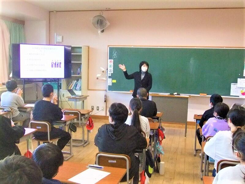 卒業を控えた6年生の子どもたちは、とても真剣に話を聞いていました。進学に向けた不安が軽減し、中学校生活に向けて期待が高まったようです。尾崎先生、ありがとうございました。