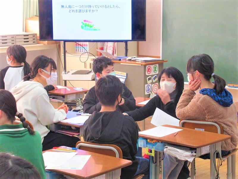 子どもたちは、小学校と中学校の違いなどについての話を聞き、グループ討議を通して人の考え方には違いがあることを知ることができました。また、人とのつき合いで大切なことなども教えていただきました。