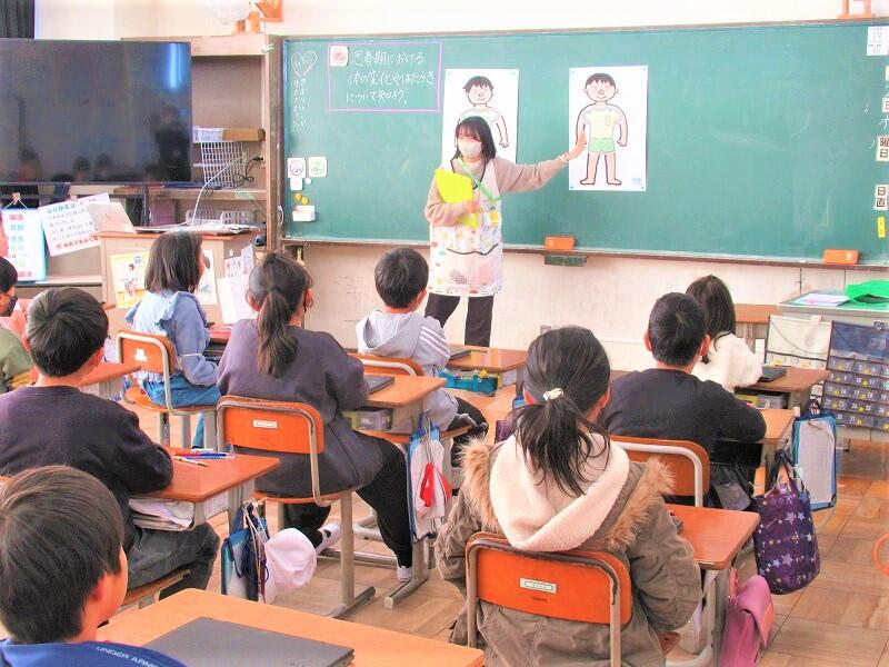 今日は、4年1組、2組、4組で、本校の養護教諭が担任と一緒に授業を行いました。