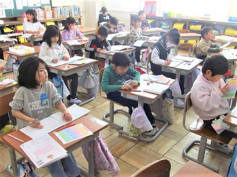 別のクラスの国語では、2年生で習った漢字の復習をしています。