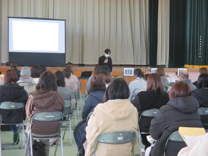 学校から、本校の教育、PTA活動、入学準備、ことばの教室、SUNさんサポート隊、氏小ナビなどについて説明させていただきました。その後、登校班・下校班編成を行いました。PTA地区委員さんにはご協力いただき、ありがとうございました。