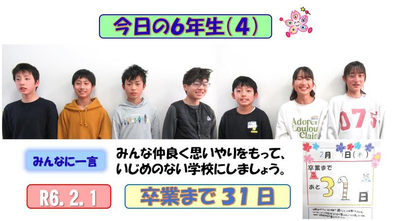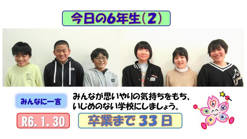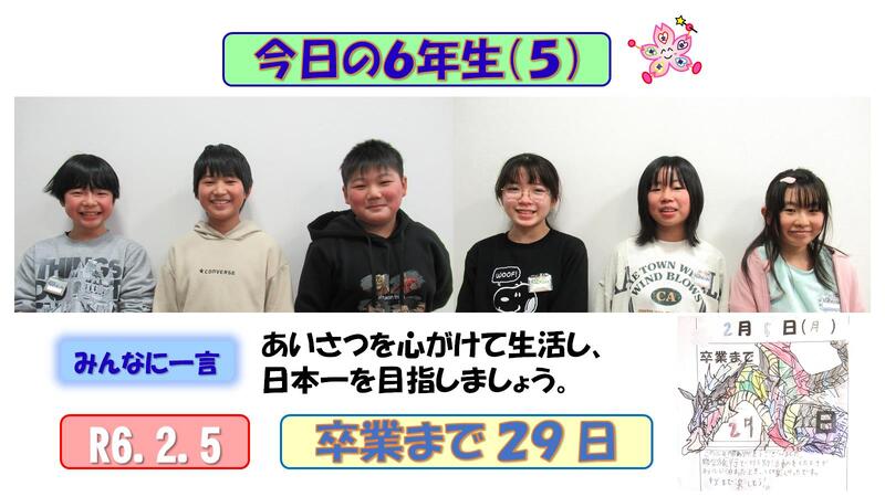 今日の6年生です。全員、将来の夢をしっかりもっていました。すばらしいです。卒業しても応援しています。