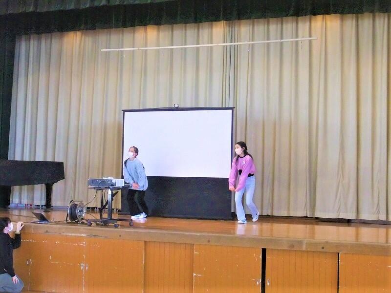 本校では、4年生以上の児童は、15種類あるクラブのどれか一つに所属して活動しています。今日の昼休みは、ダンスクラブの児童が、これまで練習した成果を体育館のステージで発表しました。
