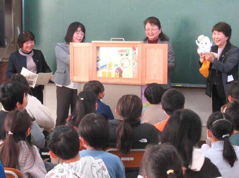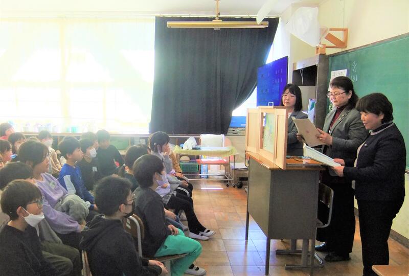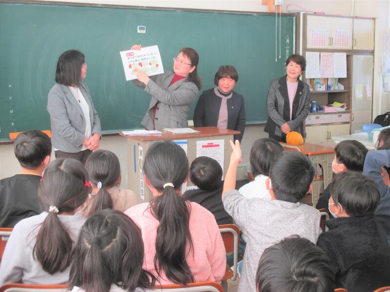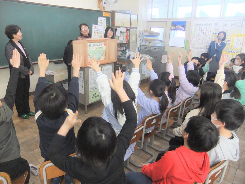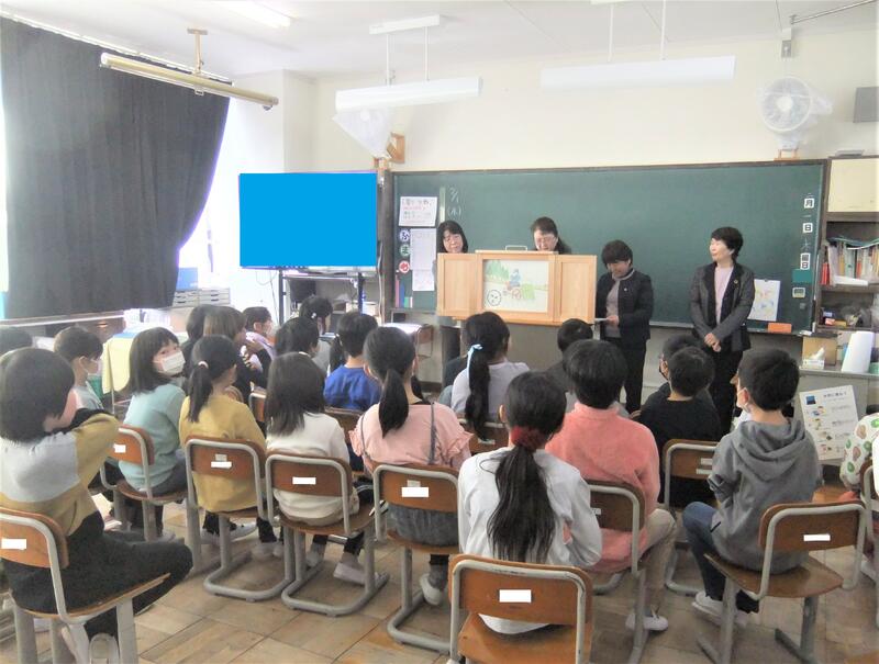 塩谷南那須地区農業士会の女性農業士の皆様が来校され、3年生を対象に、農業の大切さ、楽しさを伝える紙しばいの読み聞かせをしてくださいました。