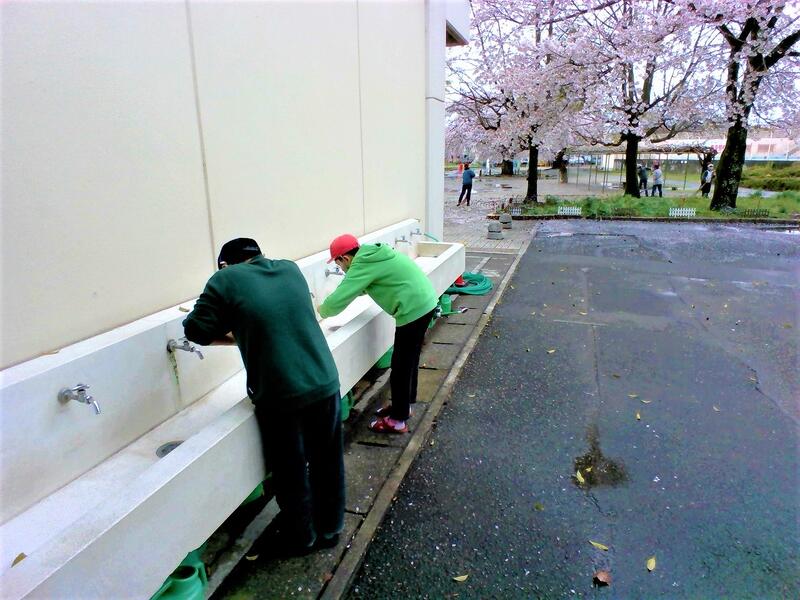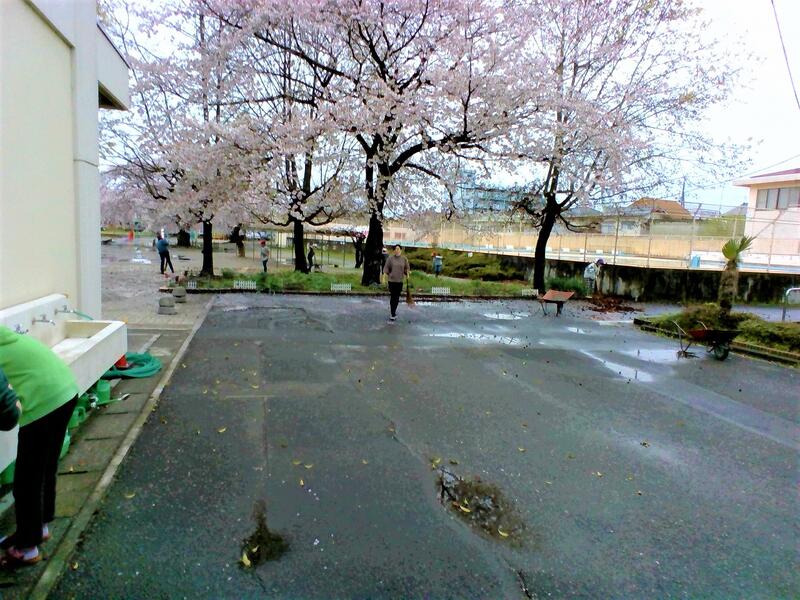 昨日は日中は雨、夜間は風が強く、天候が懸念されましたが、今日は一転して素晴らしい天気になり、校庭の桜も昨日の風雨に負けず美しく咲いているのが見られました。