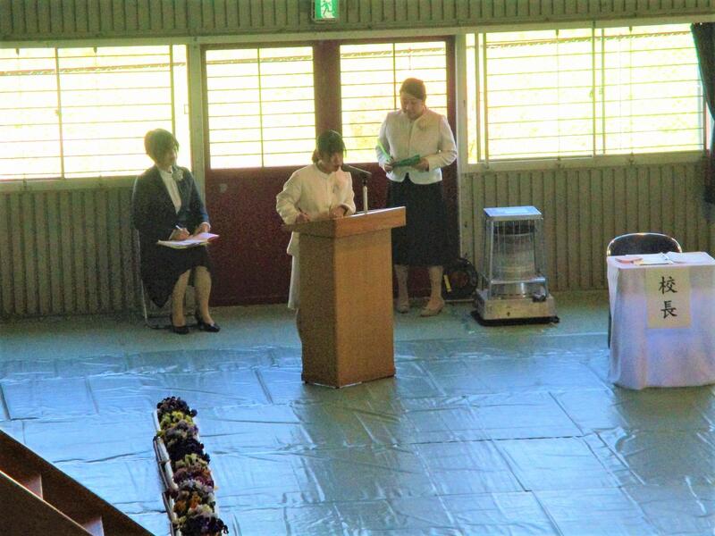 学校長式辞に続き、今年度は、教育委員会のことば、来賓祝辞をいただきました。