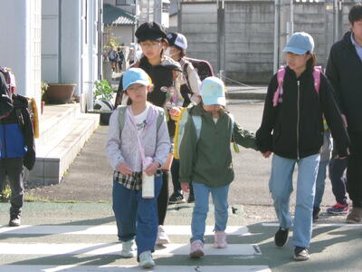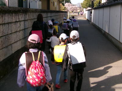 今日は、1年生の初登校です。登校班の班長さんが安全に連れてきてくれました。班の後ろに一緒に歩いてくださる保護者の方もたくさんいらっしゃいました。ありがとうございます。