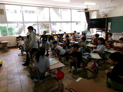 そのために今日は特別日課となり、4・5年生は先に下校して、6年生が会場づくりをしました。