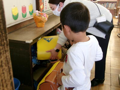 教室では、ランドセルをロッカーにしまったり、連絡袋に通知を入れたりして、学校生活の習慣を先生から教わりました。とても一生懸命で疲れるかと思います。早寝してエネルギーを満タンにして、明日も元気で登校してください。