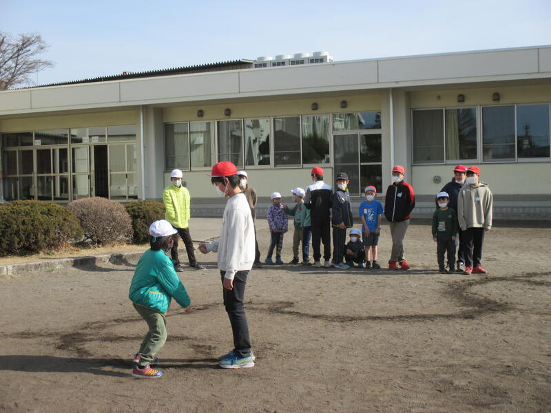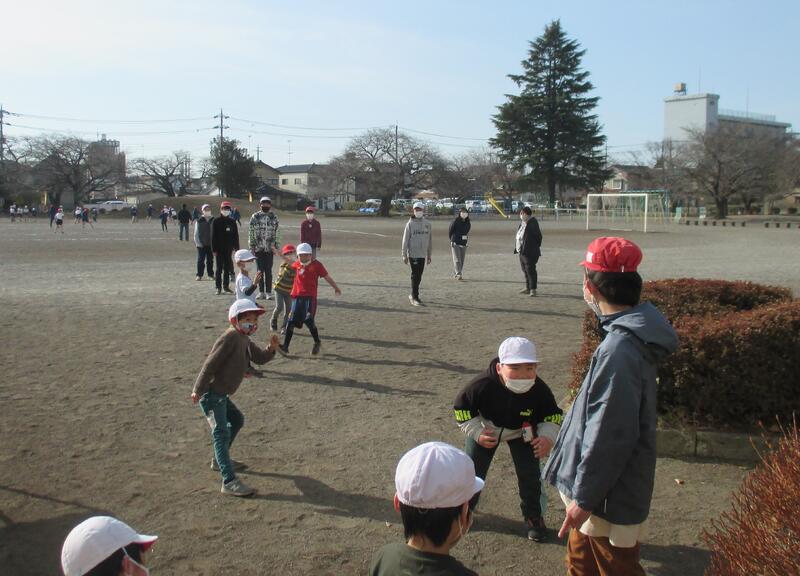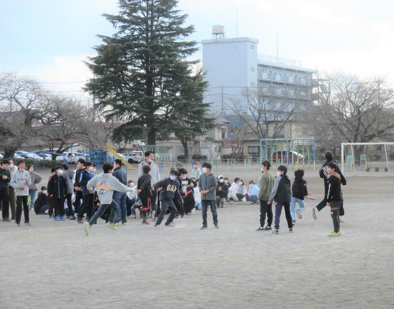 今日の1校時、前回の4組に続いて、6年2組の児童と1年2組の児童が、一緒に集団遊びをして交流しました。「だるまさんがころんだ」や「へびおに」で元気いっぱい遊びました。
