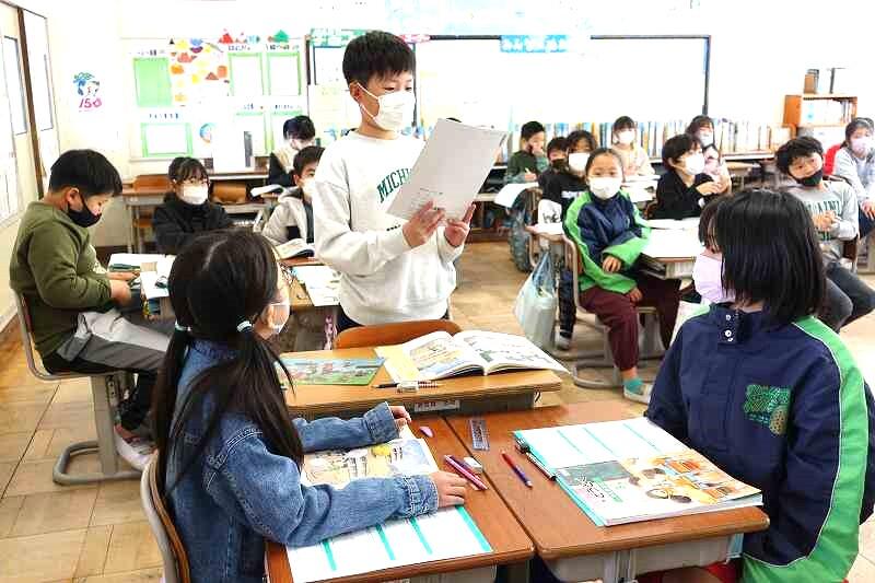 子どもたちは、なかよし班ごとに各教室に分かれ、リモートで出題される氏家小学校に関する〇✕ゲームに挑戦しました。