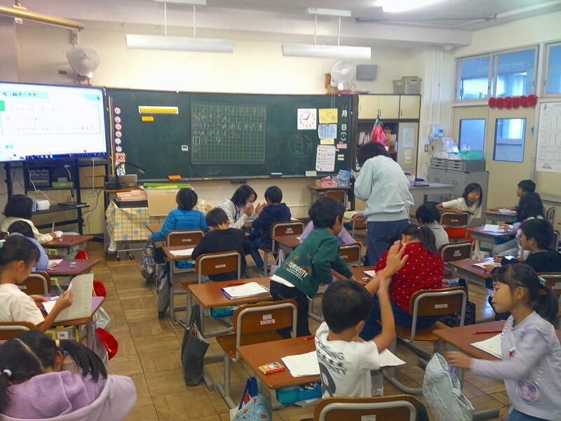 本校では、栄養教諭が様々な食事のマナーについて児童に指導を行います。みんなで楽しく食事をとるために、今日は3年生が正しい箸の持ち方について学習しました。
