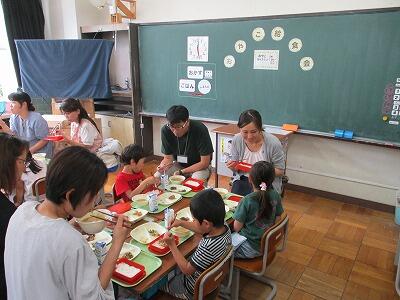 今日は、昨日に続き、親子給食を行いました。今日は1年2組と4組です。