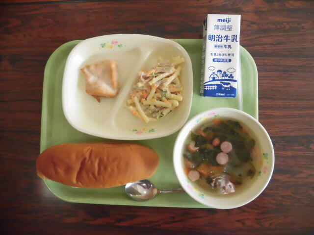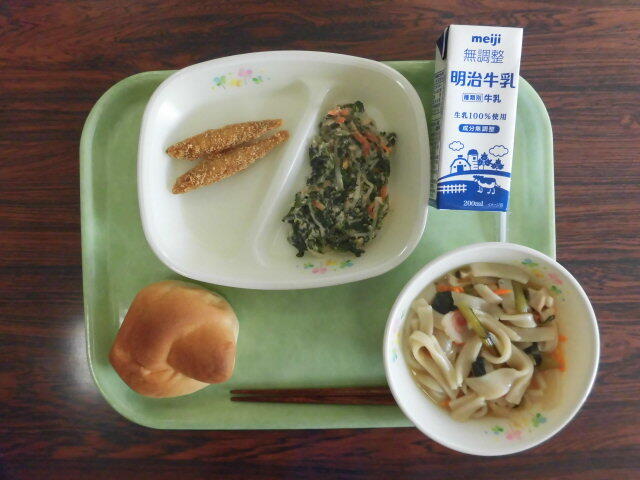 春菊は、独特の香りがあるので、苦手だという人も多いと思いますが、今日の給食では、にんじんやもやしと一緒にツナと調味料で味付けをして食べやすいように工夫しました。