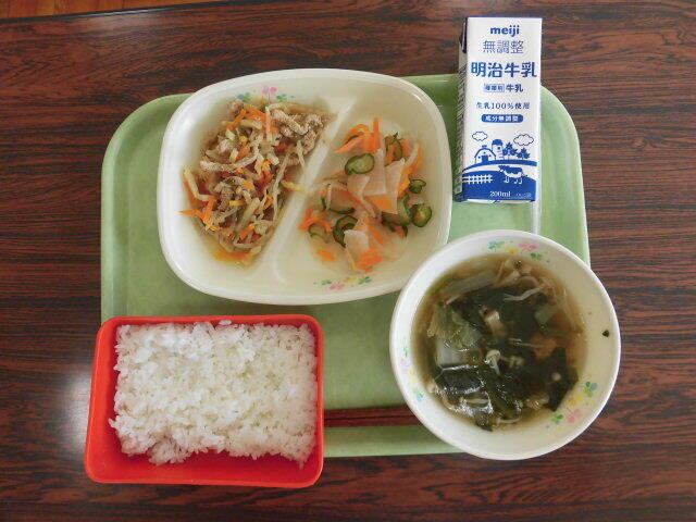 給食のチンジャオロースーは、ピーマンの他にたけのこやもやしなどたくさんの材料を使っています。