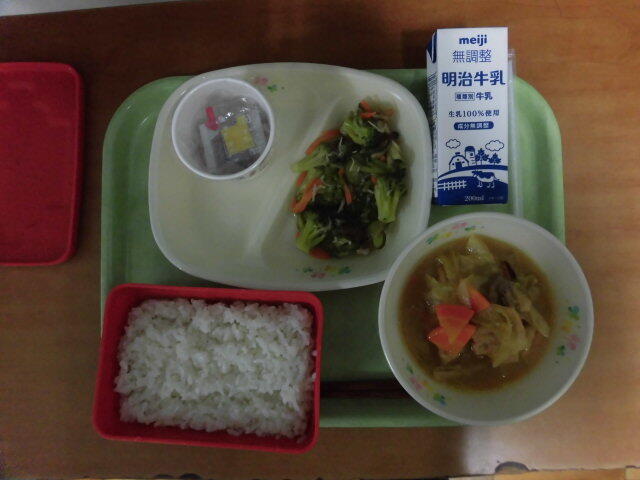今日は、たけのこ、にんじん、たまねぎ、キャベツなどたくさんの野菜と一緒に豚肉と生揚げを炒めて、みそ味にしました。