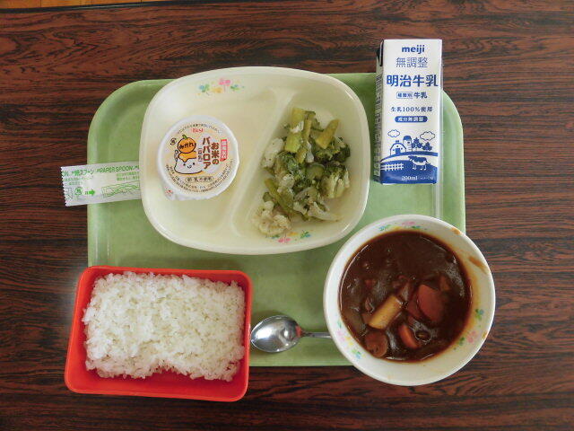 さんまには、ビタミンやカルシウム、鉄分など豊富な栄養が含まれています。中でもビタミンDはカルシウムの働きを助けて、骨を丈夫にする働きがあります。また、さんまに含まれている油には、脳の働きをよくして、イライラの解消にも効果があります。今日は、さんまを塩焼きにしました。さんまには、骨があります。上手に骨を取って、良くかんで食べましょう。