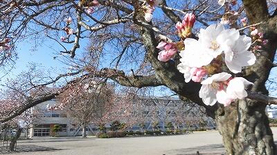 ここのところ寒い日が続いていますが、少しずつ開き始め美しい姿を見せてくれています。始業式、入学式頃、満開になるといいなあと願っているところです。下から2枚目の写真の青空の色が、とても素敵だなあと心を奪われました。やはり桜と青空は日本の象徴ですね。「令和」の意味を深く実感しています。