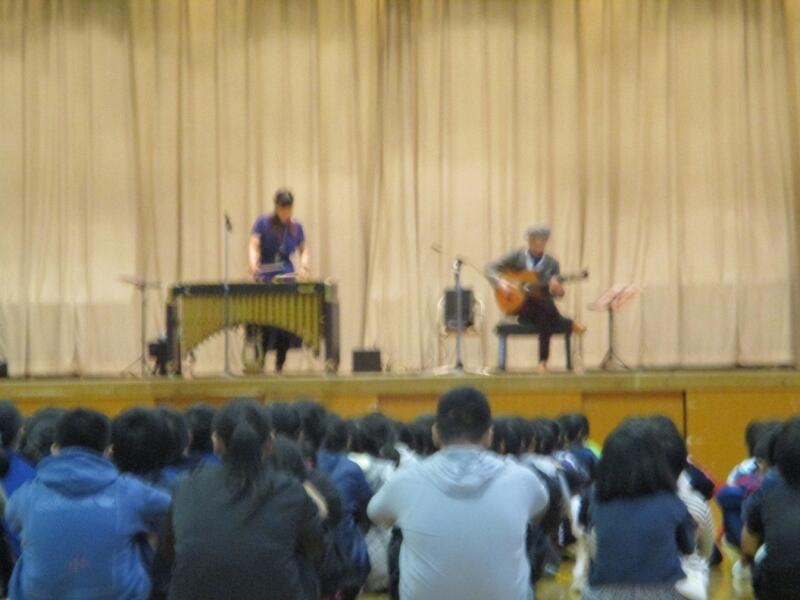 2校時は1年生から3年生、3校時は4年生から6年生が鑑賞しました。演奏は、ヴィブラフォンとギターで、音色の美しさを感じることができました。また、児童たちの身近な曲の演奏もあり楽しむこともできました。有意義な時間になりました。
