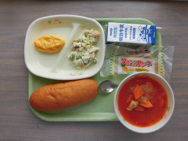 今日の給食のとり肉のトマト煮こみは「パプリカーシュチルケ」というハンガリー料理を給食風にアレンジしました。鶏肉と、パプリカ、野菜をトマトとパプリカパウダーで煮こんでいます。