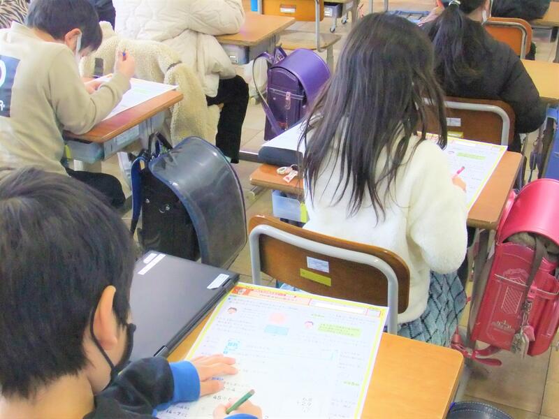 算数の授業です。単元が終了し、まとめのテストに取り組んでいます。