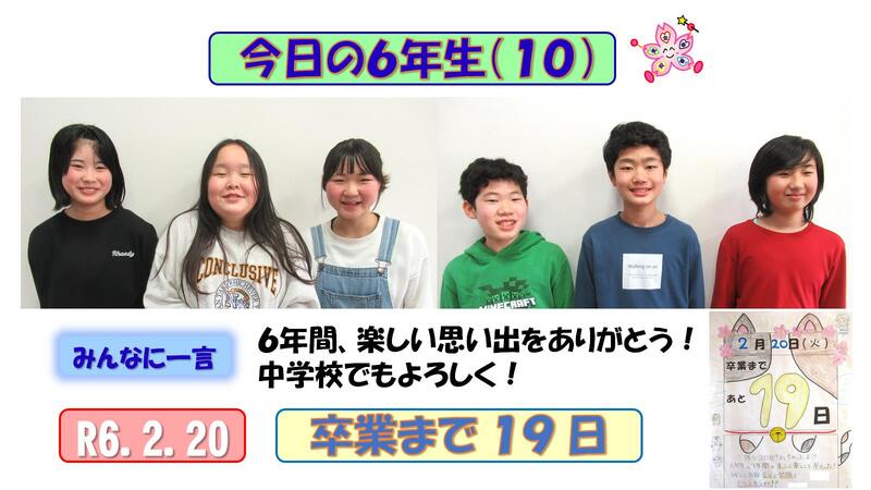 今日の6年生です。小学校での一番の思い出は、全員「修学旅行」でした。みんなで泊まったことが、とても楽しかったようです。