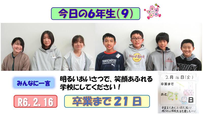 今日の6年生です。中学校では、勉強と部活動を頑張りたいと話していました。