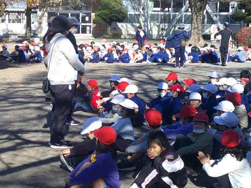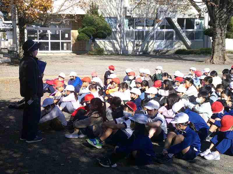 校内で火災が発生したことを想定しての避難訓練で、休み時間に実施しましたが、子どもたちは今までの学習したことを思い出して、自分で判断し、素早く静かに避難することができました。避難後は各クラスの集合場所に速やかに並び、先生の話を真剣に聞いていました。