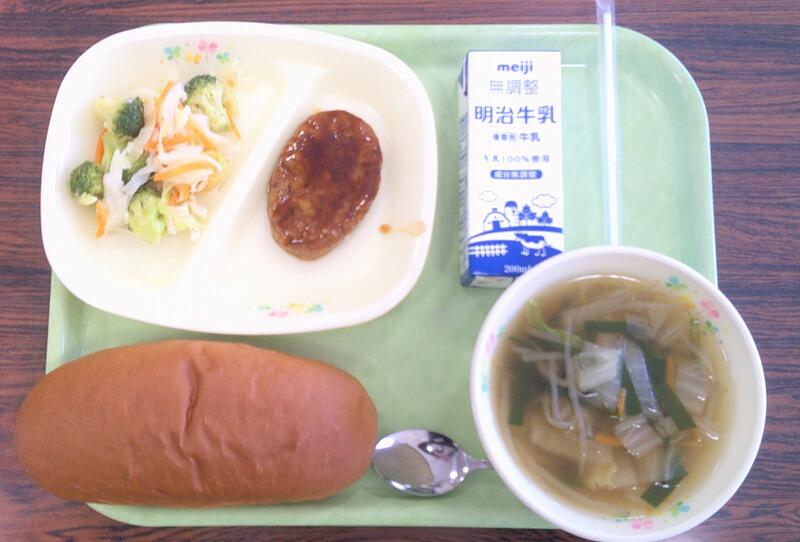 ・ ハンバーグ ケチャップソース ・ はなやさいサラダ
