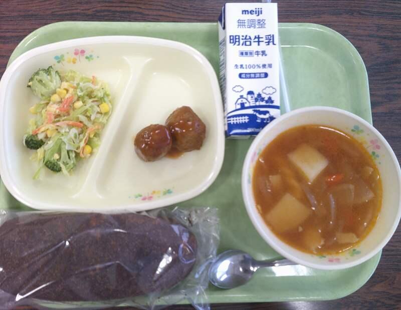 ・ 牛乳 ・ やさいにくだんご ・ コーンサラダ