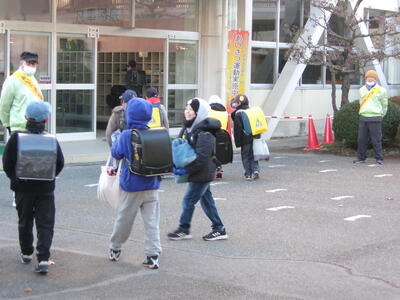 新年始まって初登校の本日、地域の青少年センターのみなさまが、あいさつ巡回運動に来てくださいました。冬休み明けの児童も、元気にあいさつを交わしていました。おかげさまで、今年もよいスタートがきれました!
