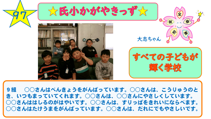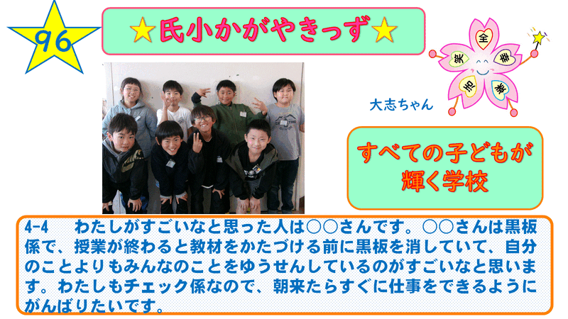 ※ ホームページでは、児童の氏名の部分を○○さんに変えています。