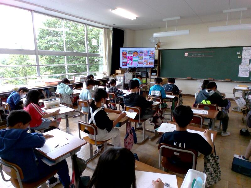 1組図画工作科の様子です。6月4日から10日は、歯と口の健康週間です。それに向けて、むし歯予防のポスターを制作しています。