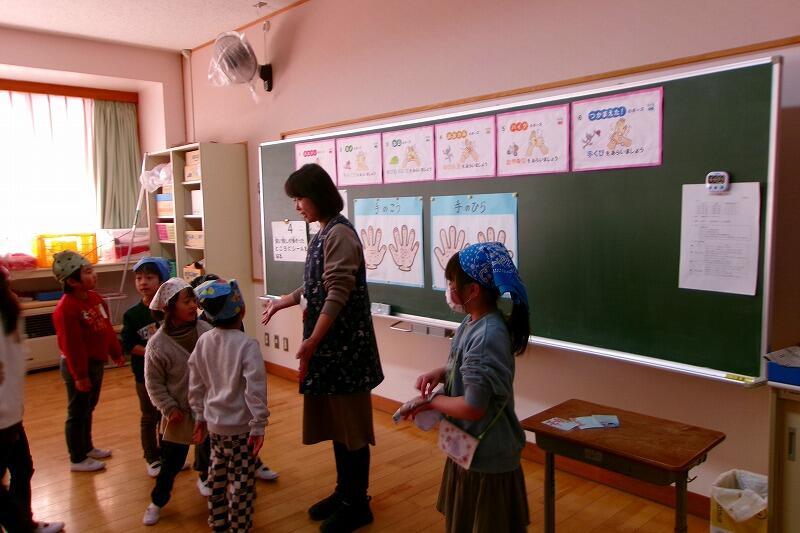 給食の前や、屋外活動の後などには手を洗うことになっていますが、水が冷たい季節でもあり、ちょっと手をぬらしただけで手を洗った気分になってしまう子もいます。