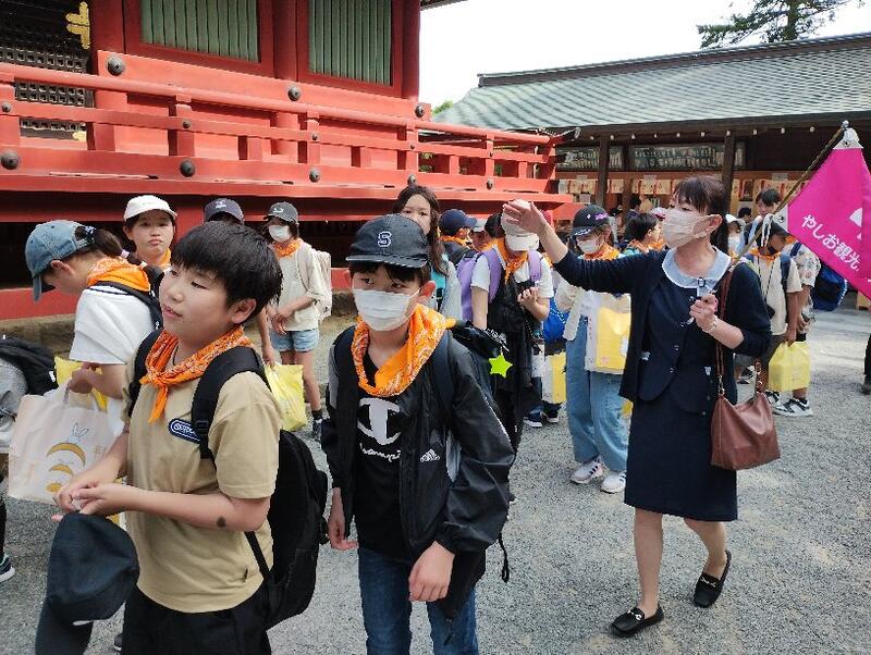 自由行動を終えた子どもたちは、鶴岡八幡宮を参拝しました。