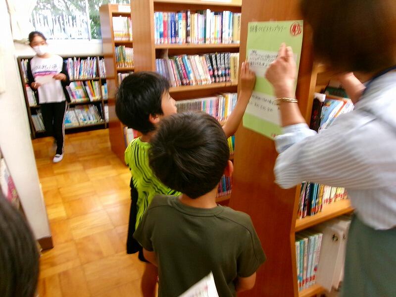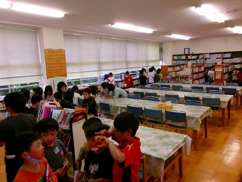 図書室では、大勢の子どもたちがクイズに挑戦していました。