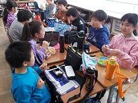 6・7・8・9組の児童は、家庭科室でおにぎりを作って、お弁当と一緒に食べていました。