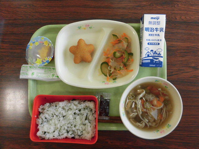 今日の献立は6月に栄養士の実習をした星野はいね先生が作った献立です。見た目が良く、食べていて楽しくなるような給食にしました。