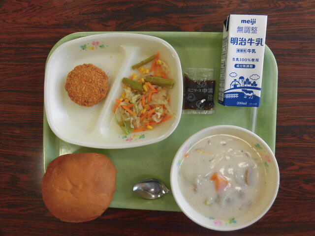 ・ 手巻きバターロール  ・ 牛乳