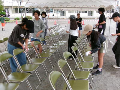 本日の放課後、5年生6年生の児童が一生懸命に準備を行いました。自分たちの競技だけでなく、運動会を支えるため、係の仕事や準備にがんばってきてくれた高学年児童の姿は、本当にすばらしかったです。