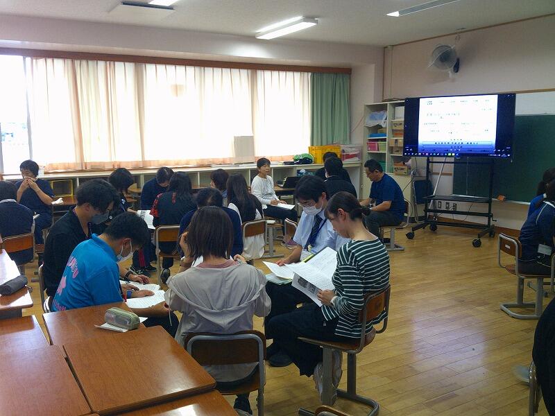 また、2年3組のこの時間は、今日は授業公開になっており、3人の教育実習生や、本校の職員が参観に訪れていました。