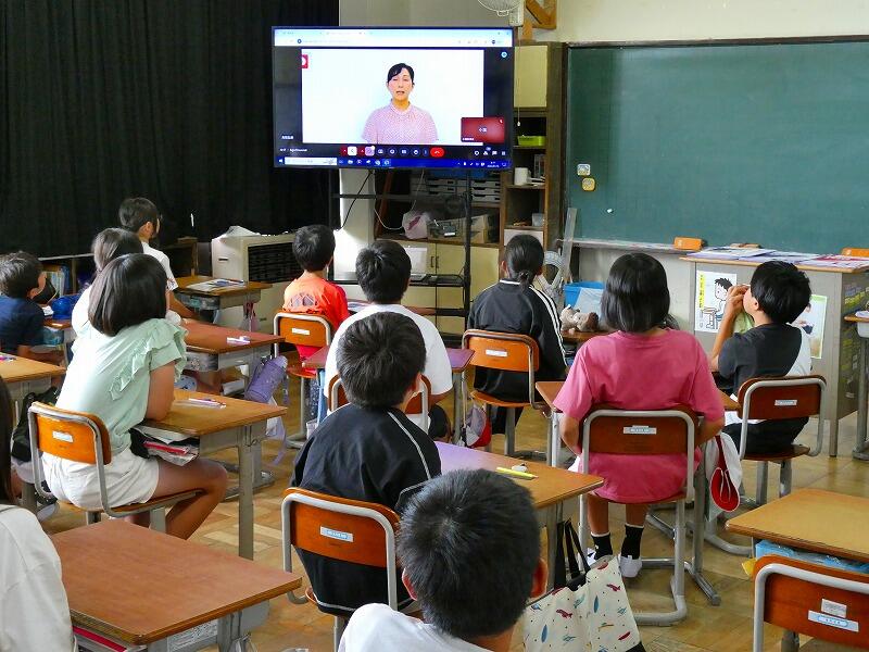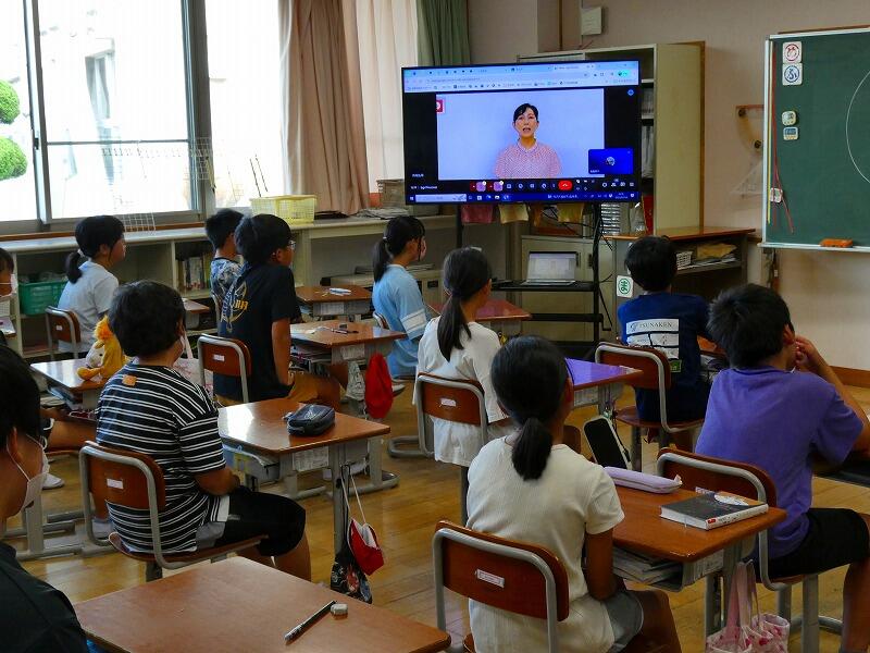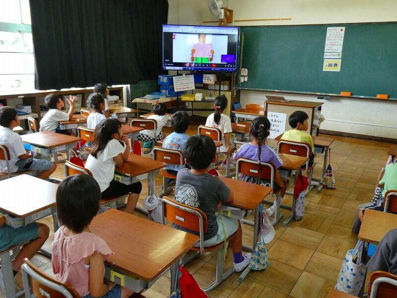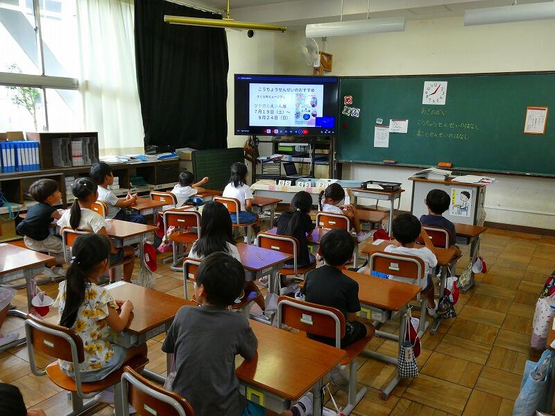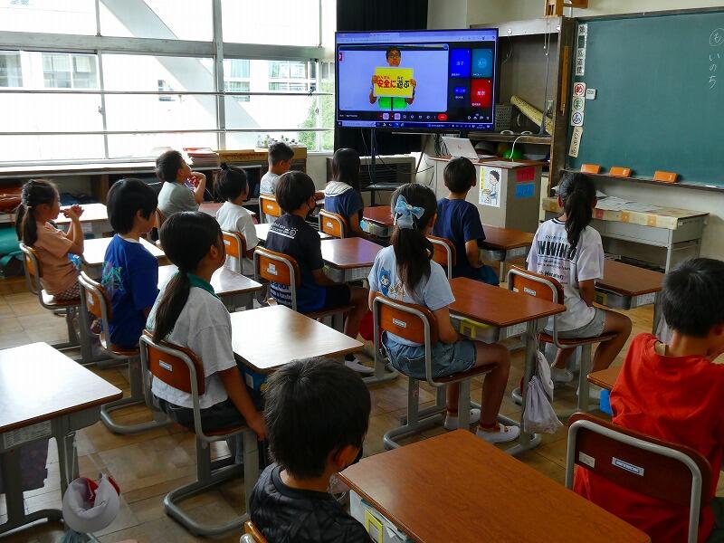 朝、リモートで夏休み前集会を行い、校長先生と、児童指導主任から、子どもたちに、夏休みの生活についてのお話がありました。