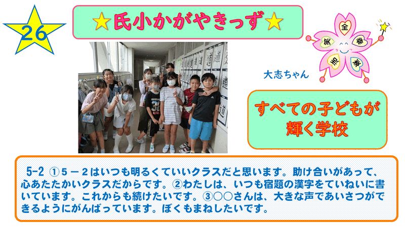 ※ ホームページでは、児童の氏名の部分を○○さんに変えています。