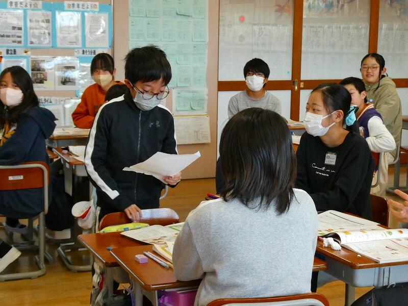 子どもたちは、栄養に加えて、彩りや地産地消にも配慮して献立を考え、できた献立をグループごとに発表し合っていました。