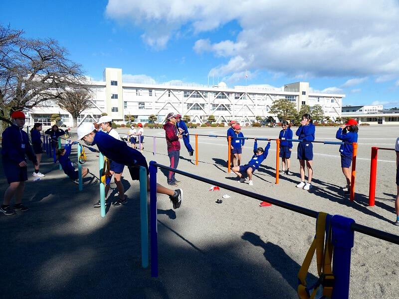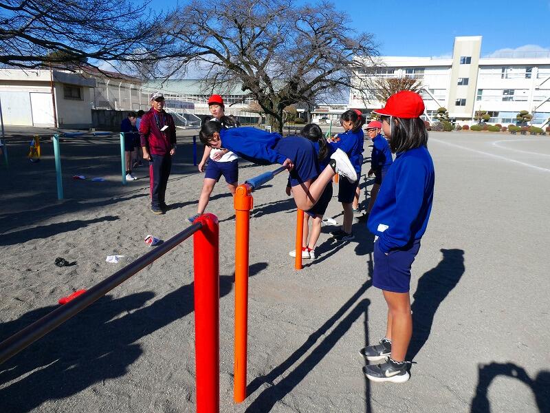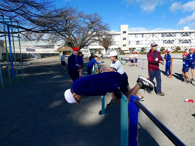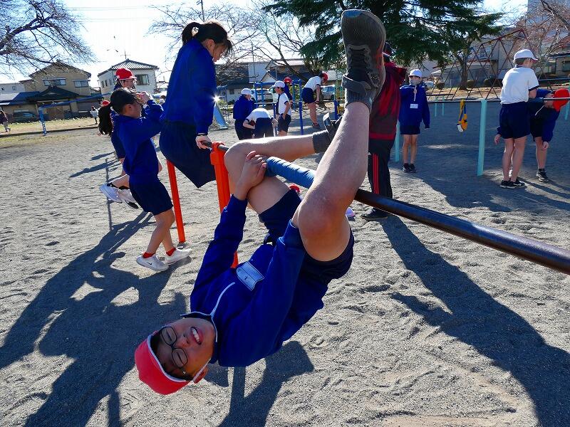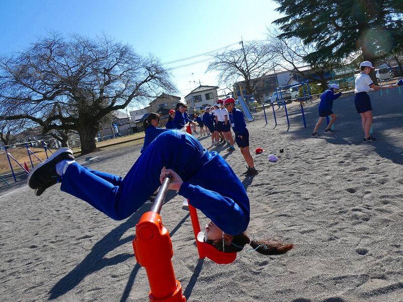 今日は快晴ながら風が強く、外での活動はかなり肌寒かったのですが、子どもたちは寒さに負けず、それぞれに挑戦する技を決めて元気に活動していました。