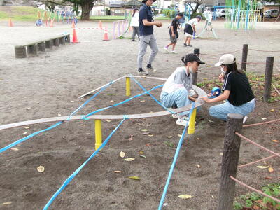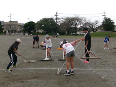 本日の放課後、5年生6年生の児童が一生懸命に準備を行いました。自分たちの競技だけでなく、運動会を支えるため、係の仕事や準備にがんばってきてくれた高学年児童の姿は、本当にすばらしかったです。
