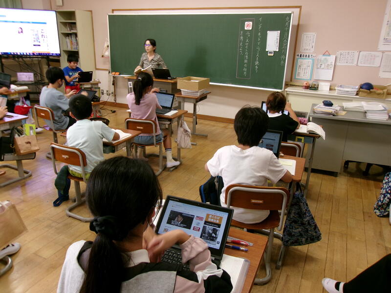国語の授業の様子です。インターネットのニュースサイトの活用の仕方について考える授業でした。