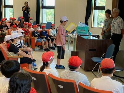 オリエンテーションです。布団のたたみ方や施設の利用の仕方などについて、職員の方からお話を聞きました。